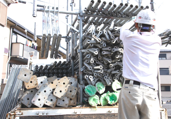 一般住宅から集合住宅、店舗、学校、工場など、多種多様な現場で足場工事を手掛けてきました。